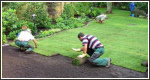 Fertigrasen wird, bis er zu Ihnen in den Garten kommt, in der Regel 1,5 Jahre lang vorkultiviert. In Privatgärten verlegen wir Fertigrasen meist in Kleinrollen (250cm x 40cm). Bei geeignetem Gelände und entsprechend großer Fläche (ab ca. 400m²) arbeiten wir auch mit Mittel- oder Großrollen.